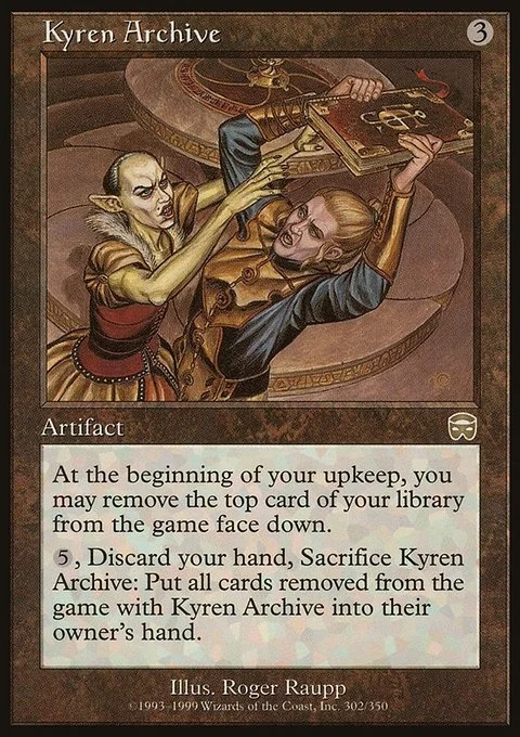 5, Discard your hand, Sacrifice Kyren Archive: Put all cards removed from the game with Kyren Archive into their owner’s hand.