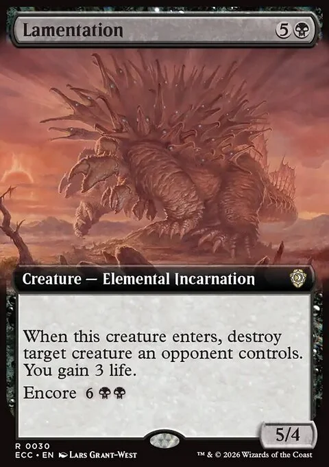 Encore {6}{B}{B} ({6}{B}{B}, Exile this card from your graveyard: For each opponent, create a token copy that attacks that opponent this turn if able. They gain haste. Sacrifice them at the beginning of the next end step. Activate only as a sorcery.)