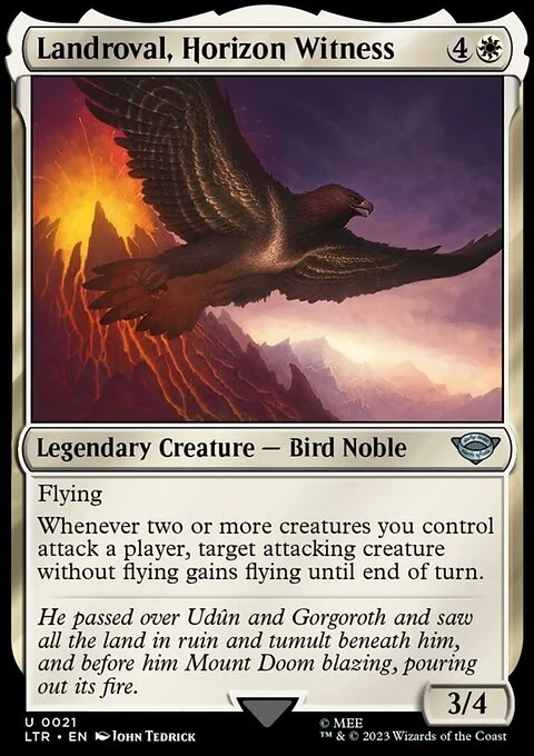 Flying Whenever two or more creatures you control attack a player, target attacking creature without flying gains flying until end of turn.
