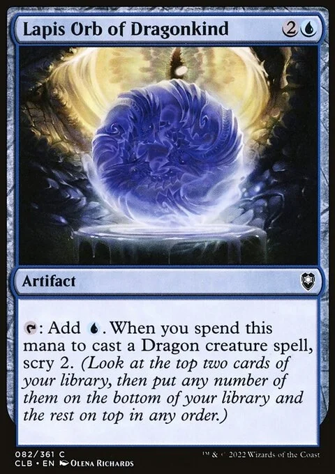 {T}: Add {U}. When you spend this mana to cast a Dragon creature spell, scry 2. (Look at the top two cards of your library, then put any number of them on the bottom and the rest on top in any order.)
