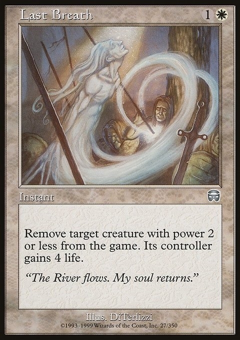 Remove target creature with power 2 or less from the game. Its controller gains 4 life.