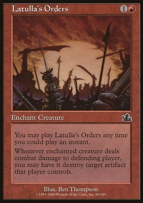 Flash Enchant creature Whenever enchanted creature deals combat damage to defending player, you may destroy target artifact that player controls.