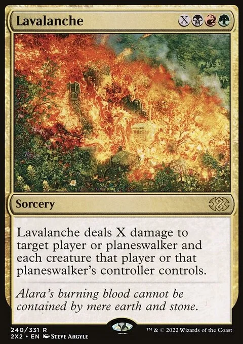 Lavalanche deals X damage to target player or planeswalker and each creature that player or that planeswalker's controller controls.