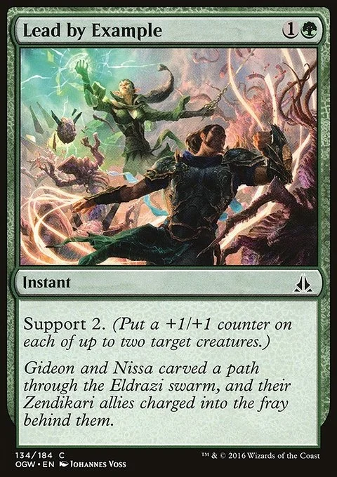 Support 2. (Put a +1/+1 counter on each of up to two target creatures.)
