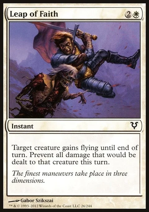 Target creature gains flying until end of turn. Prevent all damage that would be dealt to that creature this turn.