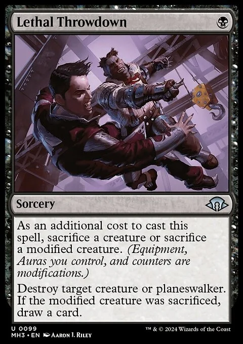 As an additional cost to cast this spell, sacrifice a creature or sacrifice a modified creature. (Equipment, Auras you control, and counters are modifications.)