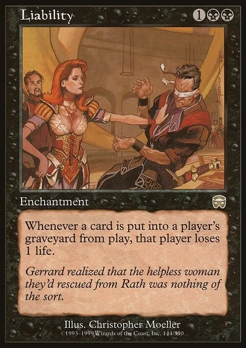 Whenever a card is put into a player’s graveyard from play, that player loses 1 life.