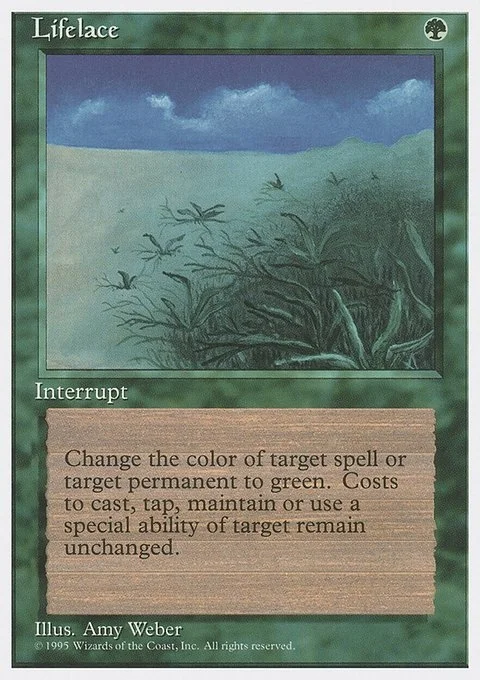 Change the color of target spell or target permanent to green. Costs to cast, tap, maintain or use a special ability of target remain unchanged.