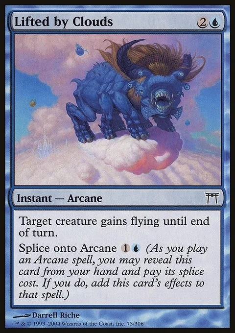 Target creature gains flying until end of turn. Splice onto Arcane {1}{U} (As you cast an Arcane spell, you may reveal this card from your hand and pay its splice cost. If you do, add this card's effects to that spell.)