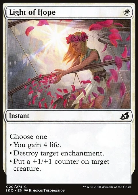 Choose one — • You gain 4 life. • Destroy target enchantment. • Put a +1/+1 counter on target creature.