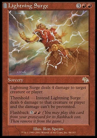 Threshold — Instead Lightning Surge deals 6 damage to that creature or player and the damage can't be prevented.