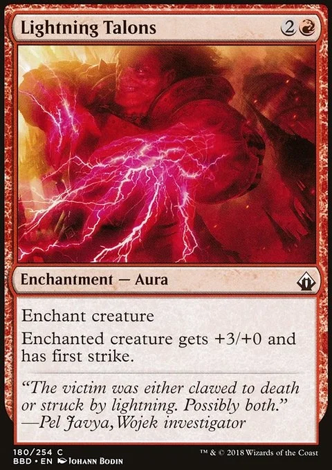 Enchant creature Enchanted creature gets +3/+0 and has first strike. (It deals combat damage before creatures without first strike.)