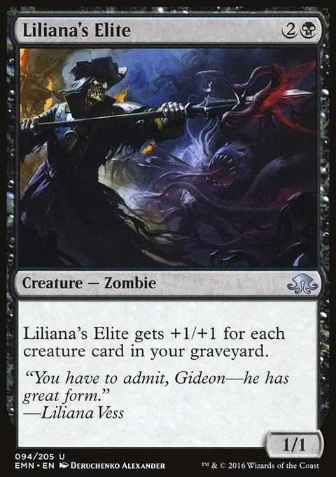 Liliana's Elite gets +1/+1 for each creature card in your graveyard.