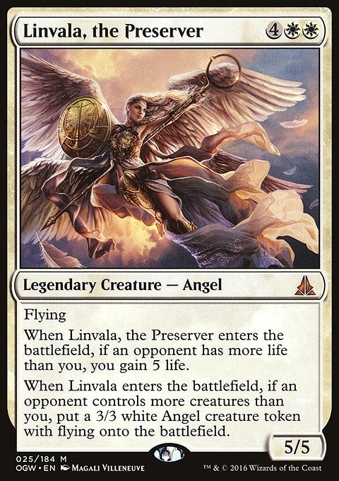 When Linvala, the Preserver enters the battlefield, if an opponent has more life than you, you gain 5 life.