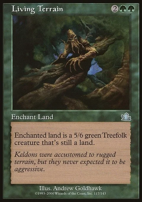 Enchant land Enchanted land is a 5/6 green Treefolk creature that's still a land.