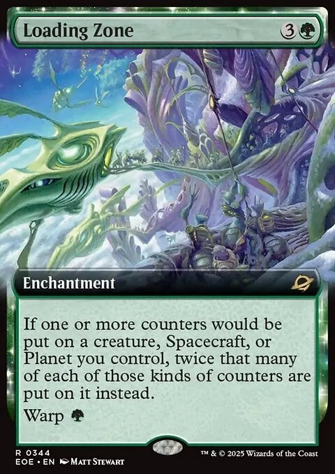 If one or more counters would be put on a creature, Spacecraft, or Planet you control, twice that many of each of those kinds of counters are put on it instead.