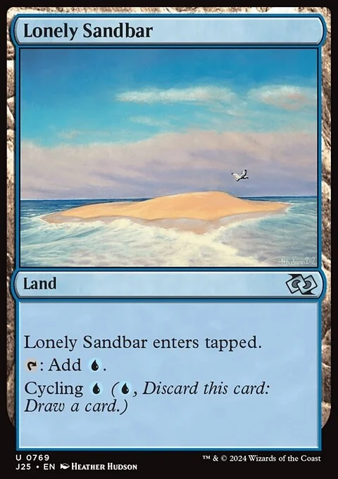 Lonely Sandbar enters tapped. {T}: Add {U}. Cycling {U} ({U}, Discard this card: Draw a card.)