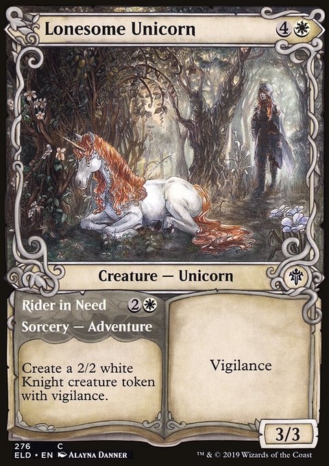Lonesome Unicorn Vigilance Rider in Need Create a 2/2 white Knight creature token with vigilance. (Then exile this card. You may cast the creature later from exile.)