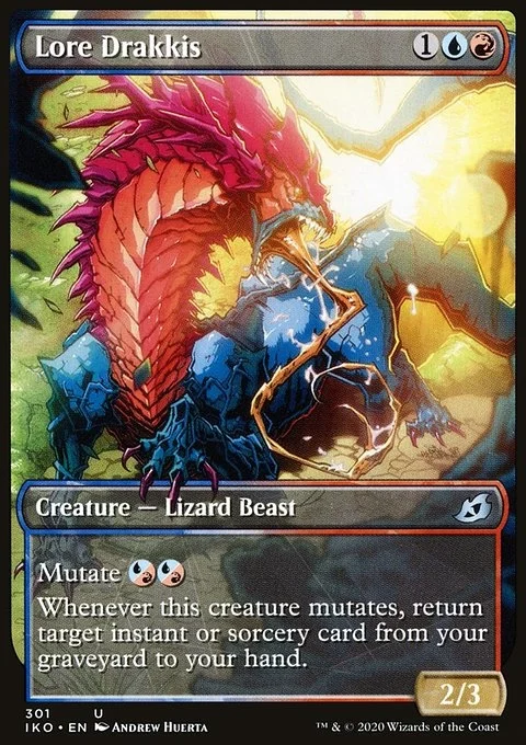 Mutate {U/R}{U/R} (If you cast this spell for its mutate cost, put it over or under target non-Human creature you own. They mutate into the creature on top plus all abilities from under it.)