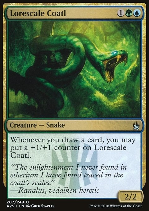 Whenever you draw a card, you may put a +1/+1 counter on Lorescale Coatl.