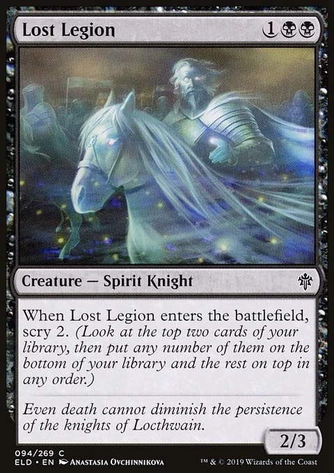 When Lost Legion enters the battlefield, scry 2. (Look at the top two cards of your library, then put any number of them on the bottom of your library and the rest on top in any order.)