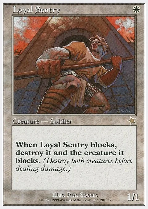 When Loyal Sentry blocks, destroy it and the creature it blocks. (Destroy both creatures before dealing damage.)