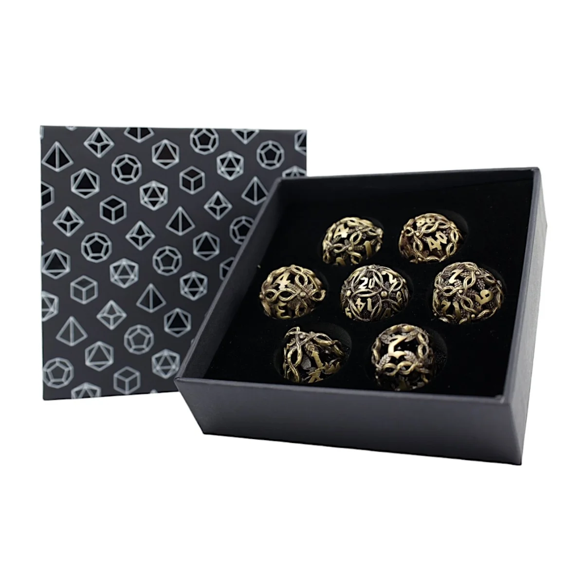 The dice come in a giftable box with a unique design, with foam divots to keep the dice secure and safe.