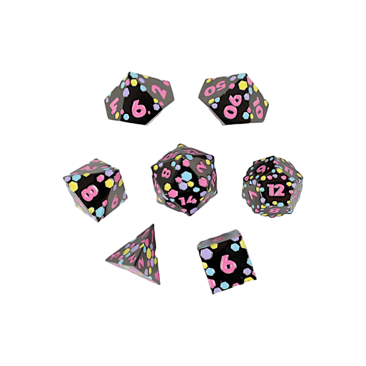 LPG Dice RPG Set Inscripted Hex Pastel Black