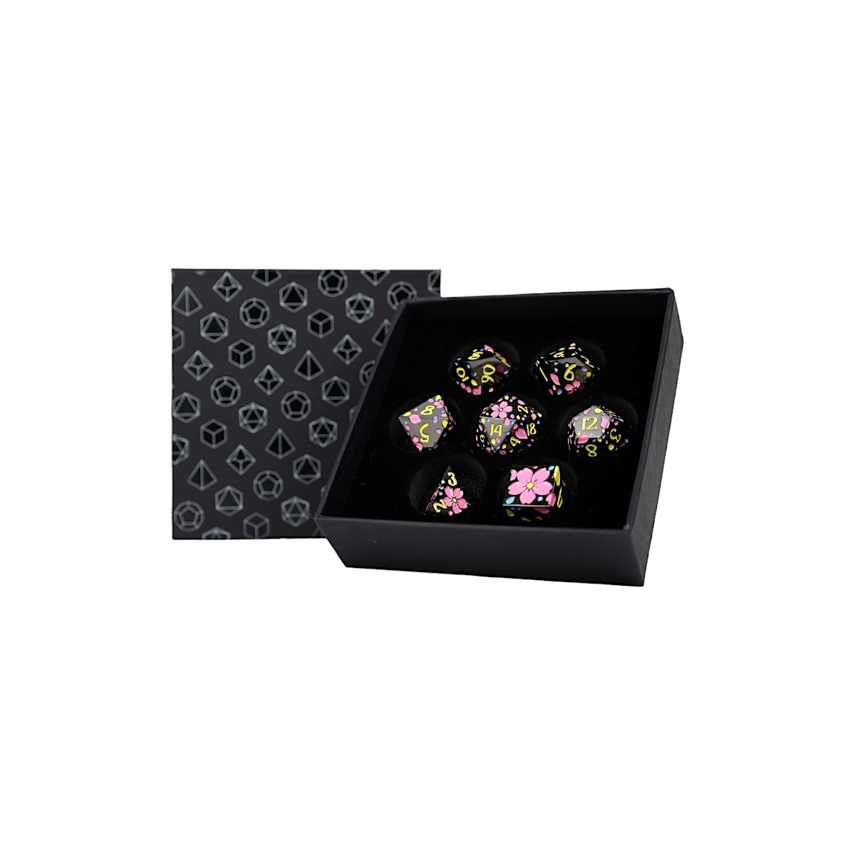 LPG Dice RPG Set Inscripted Sakura Pastel Black