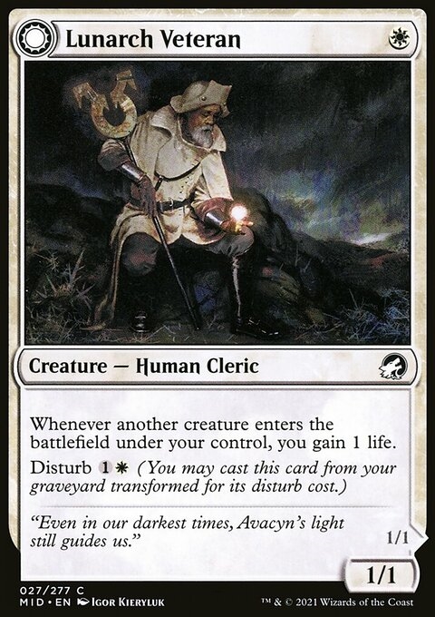 Disturb {1}{W} (You may cast this card from your graveyard transformed for its disturb cost.)