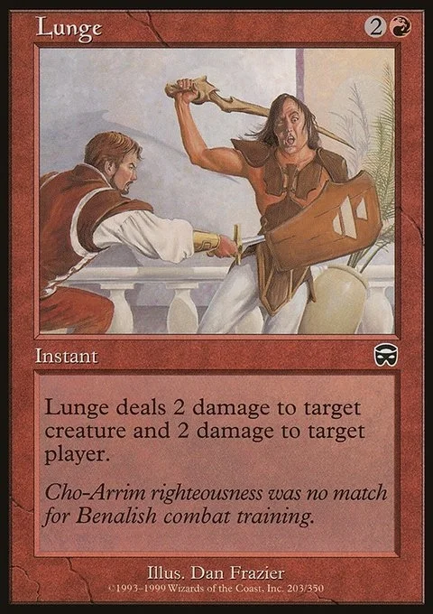 Lunge deals 2 damage to target creature and 2 damage to target player or planeswalker.