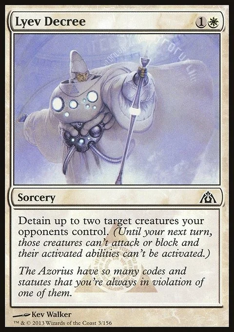 Detain up to two target creatures your opponents control. (Until your next turn, those creatures can't attack or block and their activated abilities can't be activated.)