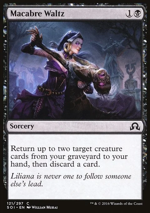 Return up to two target creature cards from your graveyard to your hand, then discard a card.