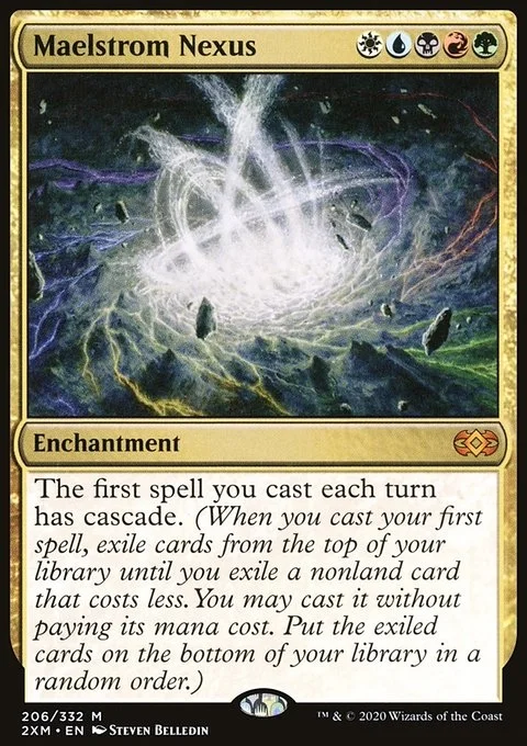 The first spell you cast each turn has cascade. (When you cast your first spell, exile cards from the top of your library until you exile a nonland card that costs less. You may cast it without paying its mana cost. Put the exiled cards on the bottom of your library in a random order.)