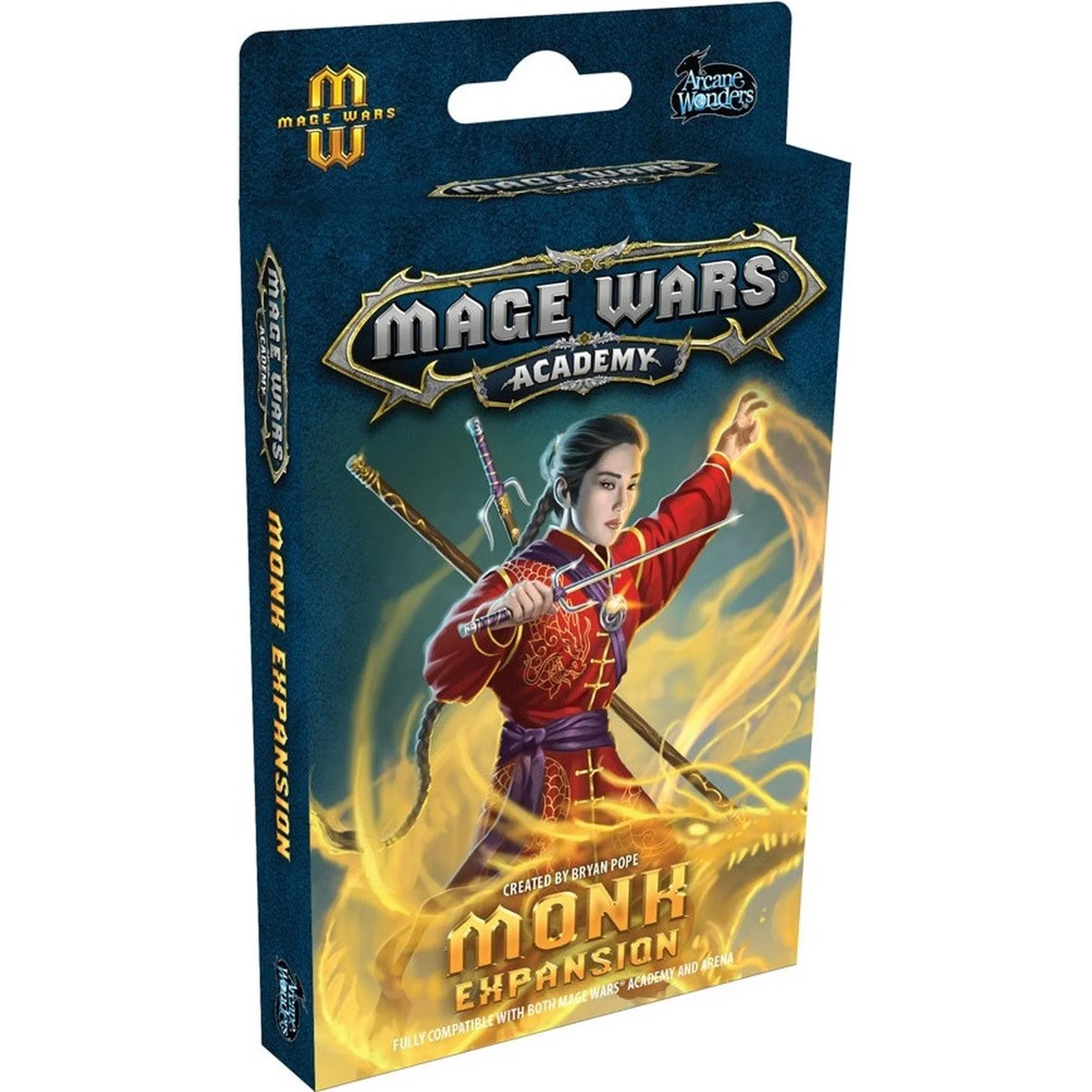 Mage Wars Academy is a fast-paced strategy card game of magical combat! In this expansion set, play as a disciplined Monk mastering your body and mind through martial arts! 72 spell cards, game markers & rules sheet included. All cards are 100% compatible with BOTH Mage Wars Academy and Arena. Use KI to empower abilities to fantastic levels.