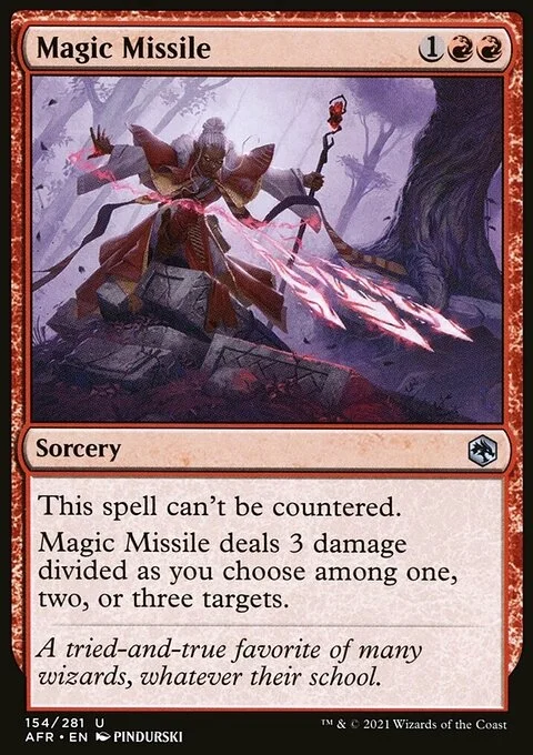This spell can't be countered. Magic Missile deals 3 damage divided as you choose among one, two, or three targets.