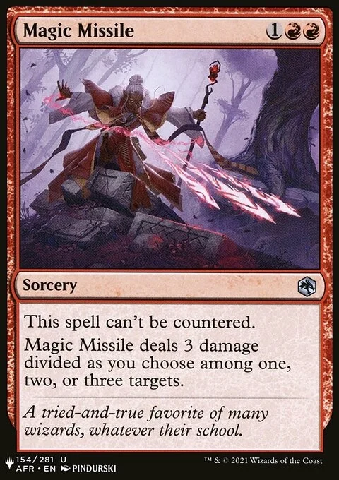 This spell can't be countered. Magic Missile deals 3 damage divided as you choose among one, two, or three targets.