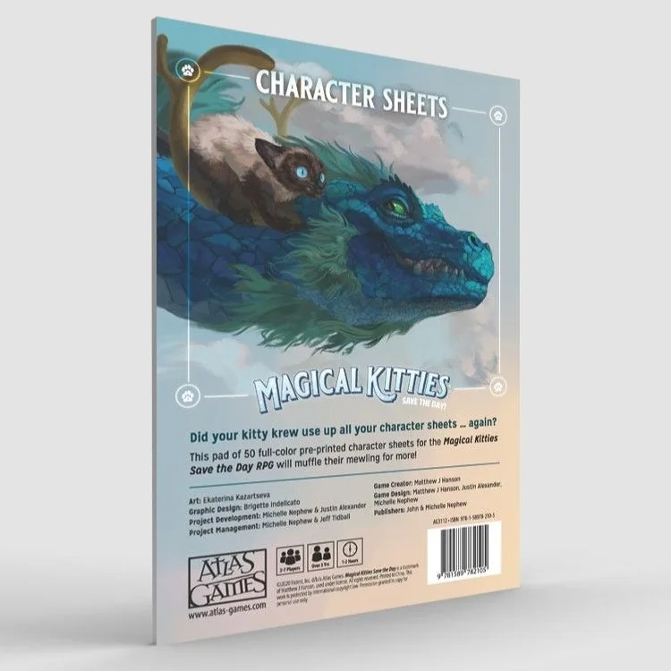 - Double-sided, full-color character sheets make it easy to track your kitty’s abilities.
