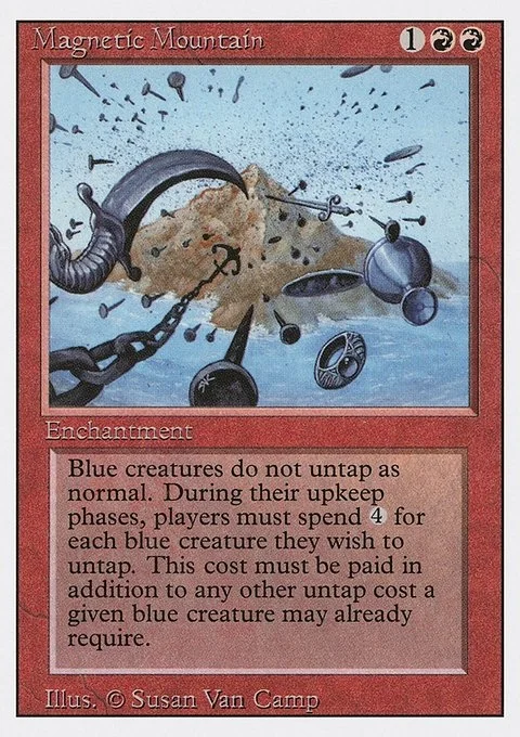 Blue creatures do not untap as normal. During their upkeep phases, players must spend 4 for each blue creature they wish to untap. This cost must be paid in addition to any other untap cost a given blue creature may already require.