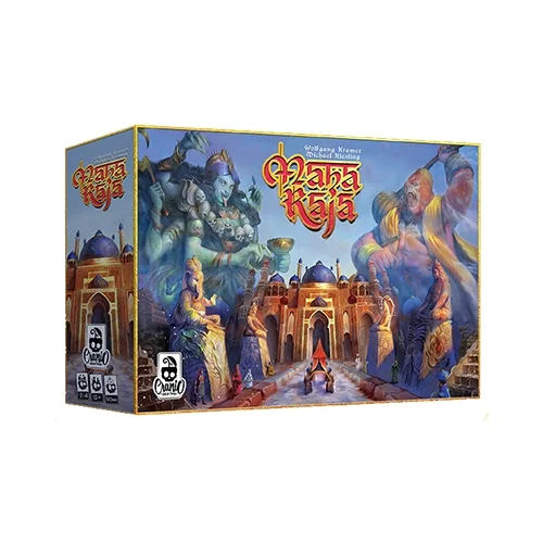 Maharaja is a new edition of the classic game by the authors Wolfgang Kramer and Michael Kiesling. In this new version of the game which supports 1 to 4 players and is enriched with new graphics and components, you build statues of your God of reference to please the Maharaja during their visit and score victory points at the end of the game depending on the majority you reach.
