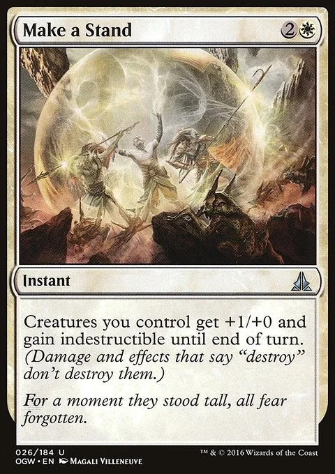 Creatures you control get +1/+0 and gain indestructible until end of turn. (Damage and effects that say "destroy" don't destroy them.)
