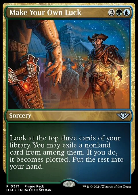 Look at the top three cards of your library. You may exile a nonland card from among them. If you do, it becomes plotted. Put the rest into your hand. (You may cast it as a sorcery on a later turn without paying its mana cost.)