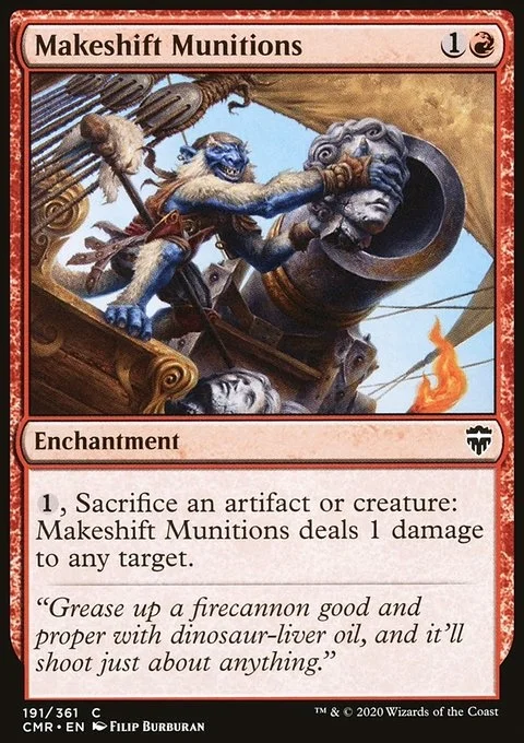 {1}, Sacrifice an artifact or creature: Makeshift Munitions deals 1 damage to any target.