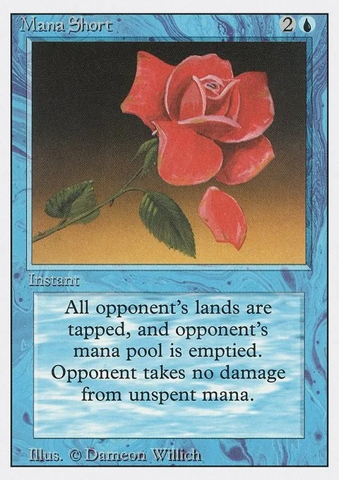 All opponent’s lands are tapped, and opponent’s mana pool is emptied. Opponent takes no damage from unspent mana.