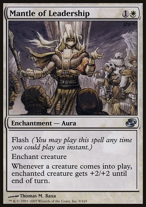 Whenever a creature comes into play, enchanted creature gets +2/+2 until end of turn.
