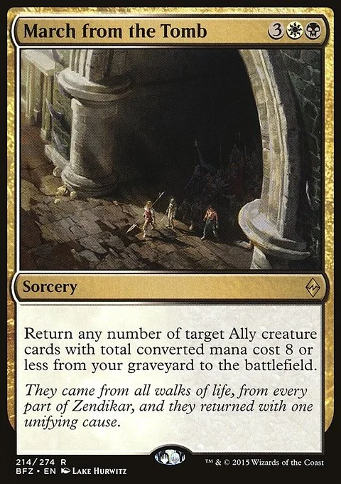 Return any number of target Ally creature cards with total converted mana cost 8 or less from your graveyard to the battlefield.