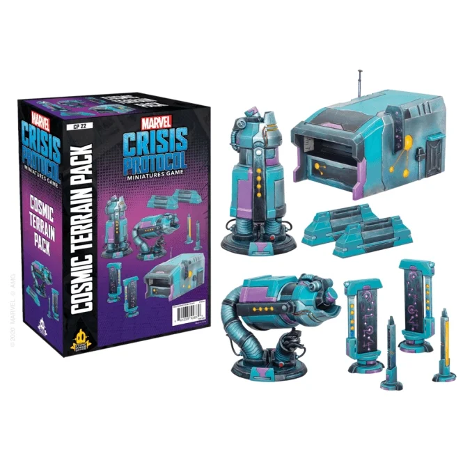 Take your Marvel: Crisis Protocol battles to new worlds with the Cosmic Terrain Pack. This pack includes a host of highly detailed miniatures terrain so that you can create the perfect cosmic landscape for your superpowered showdowns across the galactic worlds of the Marvel Universe.
