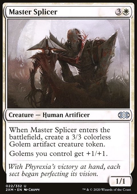 When Master Splicer enters the battlefield, create a 3/3 colorless Golem artifact creature token. Golems you control get +1/+1.
