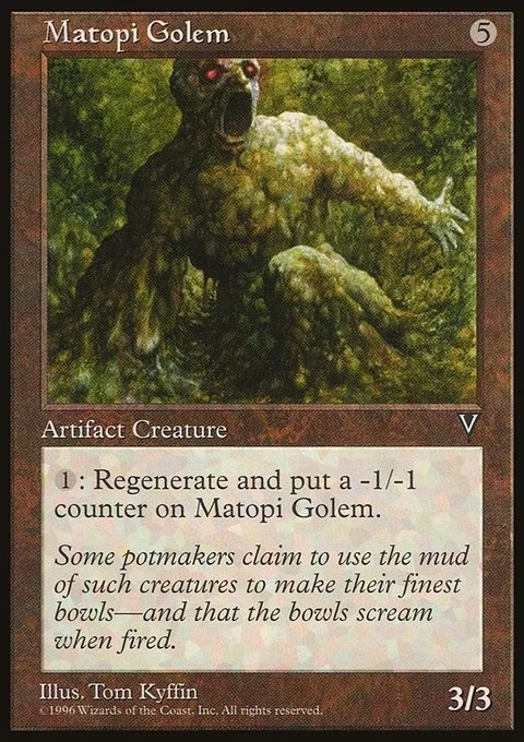1: Regenerate and put a -1/-1 counter on Matopi Golem.