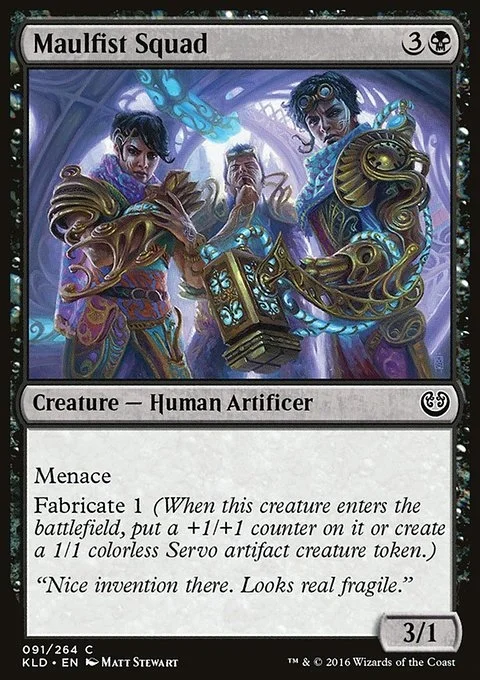 Menace Fabricate 1 (When this creature enters, put a +1/+1 counter on it or create a 1/1 colorless Servo artifact creature token.)